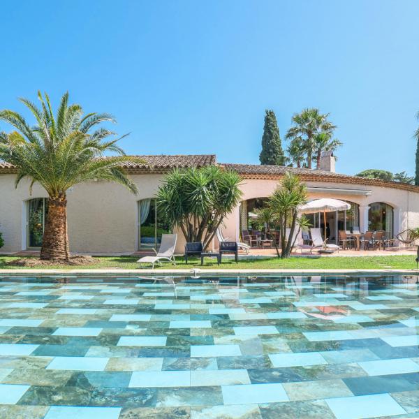A superb, fully air-conditioned Provençal style villa, at the entrance of St-Tropez, offering a quiet and green environment, just a few meters from the beach of "Bouillabaisse" of Saint-Tropez